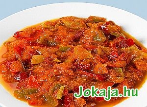 A paradicsomot pár pillanatra forró vízbe mártva, majd lehűtve meghámozzuk és kockára vágjuk. A hagymát finomra vágjuk és az olajon sárgára pirítjuk. Hozzáadjuk a paradicsomot, fűszerezzük és kb. 10 percig főzzük, hogy a paradicsom darabkái mártássá essenek szét.